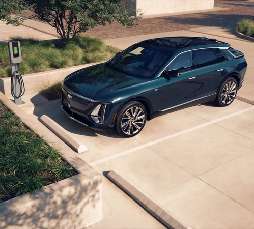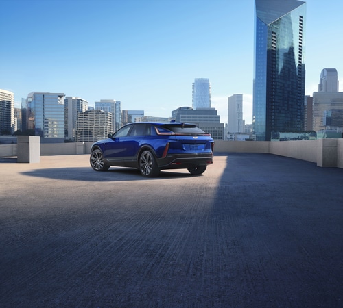A closed front fascia defines the LYRIQ’s appearance, featuring vertical LED lighting elements that create a recognizable nighttime signature. The absence of a traditional grille reflects the electric architecture underneath. Body panels flow from the front corners along a descending roofline toward a compact rear section. Ground clearance provides SUV stance while supporting aerodynamic targets. Depending on trim selection, wheel sizes range from 20 inches to 22 inches. The driver-side front fender houses the charge port for connection to home charging equipment or public stations across Winnipeg. Rear lighting mirrors the front’s vertical arrangement, completing the design language.